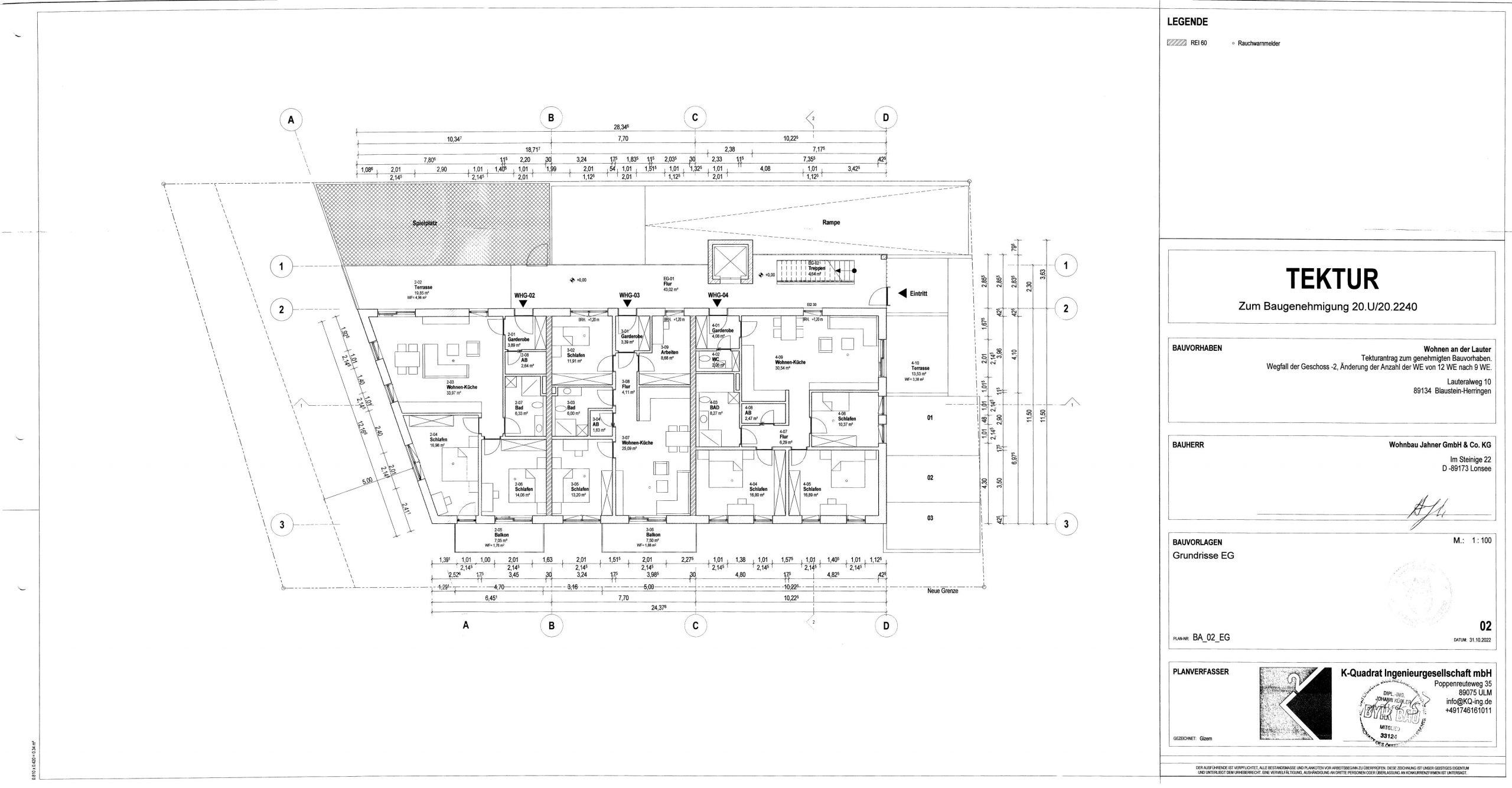 Für unser Bauvorhaben ist die Baugenehmigung bereits vorhanden, mit dem Bau wurde aber noch nicht begonnen. Die 9 Wohnungen sind unterschiedlich groß. Die Größe der einzelnen Wohnungen können Sie aus den beigefügten Zeichnungen entnehmen.